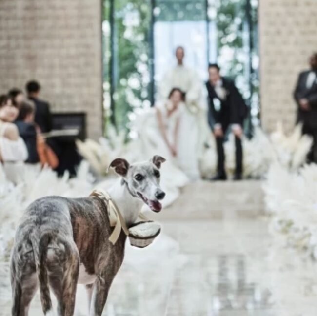 NY の都会の雰囲気を表現しつつ、木の幹をモチーフにしたウッドタイルで温かみを感じるデザインが魅力。天井高 10m、バージンロード16mのスケールと光に満ちた空間でふたりらしい誓いを。ホテルWでありながらペットフレンドリーも対応可能。大切な家族の一員として一日一緒に過ごすことができる。